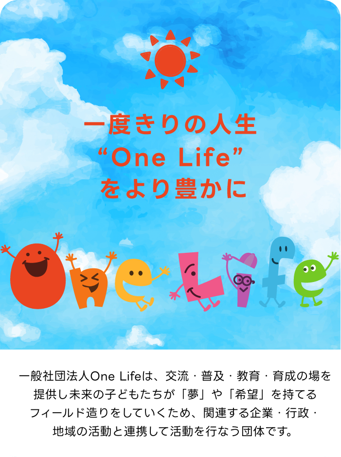 一般社団法人One Lifeは、交流・普及・教育・育成の場を提供し未来の子どもたちが