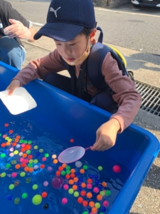 いのフェスに行こう! 2022.10.22 お知らせ プログラムスマイル こんにちは! 今日は『JobLife』主催のフリーマーケット『いのFes』に参加しました👏 利用者の方が作られた、雑貨や竹細工が並んでいました!くじ引きやスーパーボールすくいに、子ども達は興味津々!たくさん遊んだね。