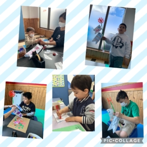 こいのぼり製作 2021.05.05 プログラムOKAZAKI お知らせ 5月5日 子どもの日 日本では子どもたちみんなが元気に育ち、大きくなったことをお祝いする日です。 5月2日にこいのぼりの製作を行いました。 Job Lifeさんに、用意してもらったこいのぼりキットを使って、ビニールにそれぞれ絵を描き作りました。 完成したオリジナルこいのぼりを眺めながらとてもうれしそうな子ども達でした。