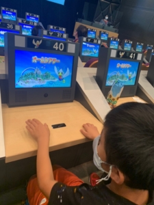ホームシアターでは自分で作ったキャラクターを操作しながら、クイズやゲームを楽しみました。