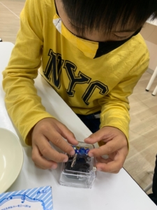 レンジを使用して作ったアクセサリーやビーズ、シールを配置を工夫しながらデコレーションしていき可愛いオリジナルのオルゴールができました。