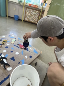 粘土を細長く紐状に作り、お魚を釣るゲームで「競争だぁー!」っと言い夢中にお魚を釣っていました。