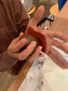 光るどろだんご作り! 2022.01.08 お知らせ プログラムスマイル 今日はINAXライブミュージアムに「光るどろだんごづくり」を体験してきました!!☺ やきもの用の粘土と道具を使って作りました。 粘土を球状にし削って表面を滑らかにします。 化粧どろで色をつけ、瓶の口を使って磨いたら光沢がでて「光るどろだんご」の出来上がりです。 今日の目的である「先生の指示を聞き、ルールを守って体験を楽しむこと」みんな達成できました👏