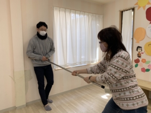 今月は「さすまたの使い方」を練習しました。