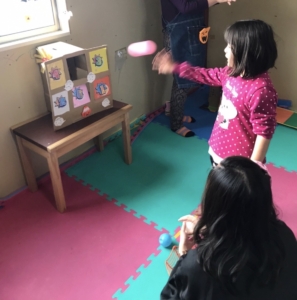 ボーリング、空気砲で的当て、ボール投げ、ヴァイベン、くじ引きで遊びました。
