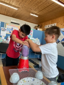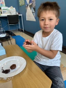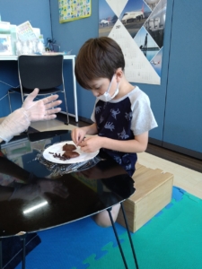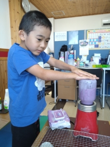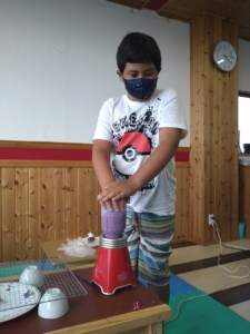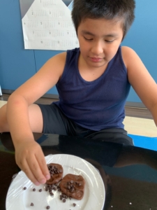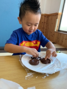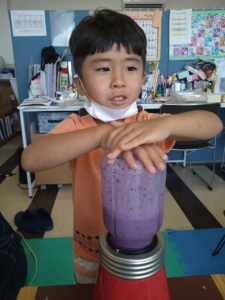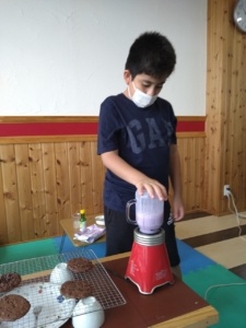 子どもたちと一緒にチョコクッキー🍪とブルベーリージュース🫐を作りました。