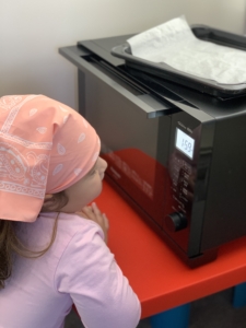 焼きあがるのをオーブンの前で楽しみしている姿もありました。