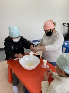 ムースをつくっていると「いい匂い❤」と子どもたちも早く食べたい様子😋