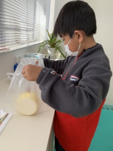 事前に野菜や飲み物、乳製品、お肉などの単語を英語で練習し、